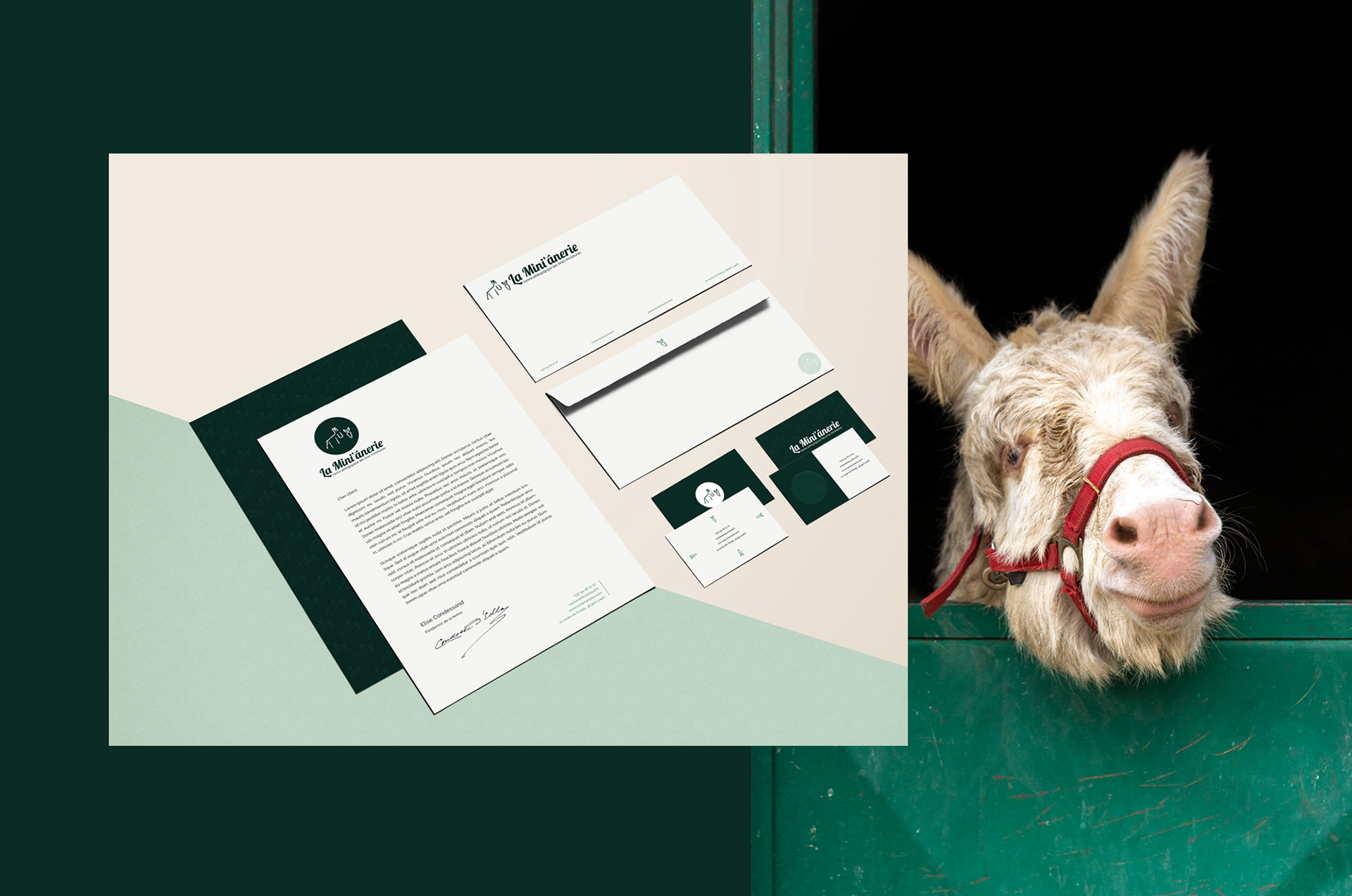 J'ai créé une identité évocatrice avec des couleurs naturelles, tout en intégrant des illustrations de la vie à la ferme.