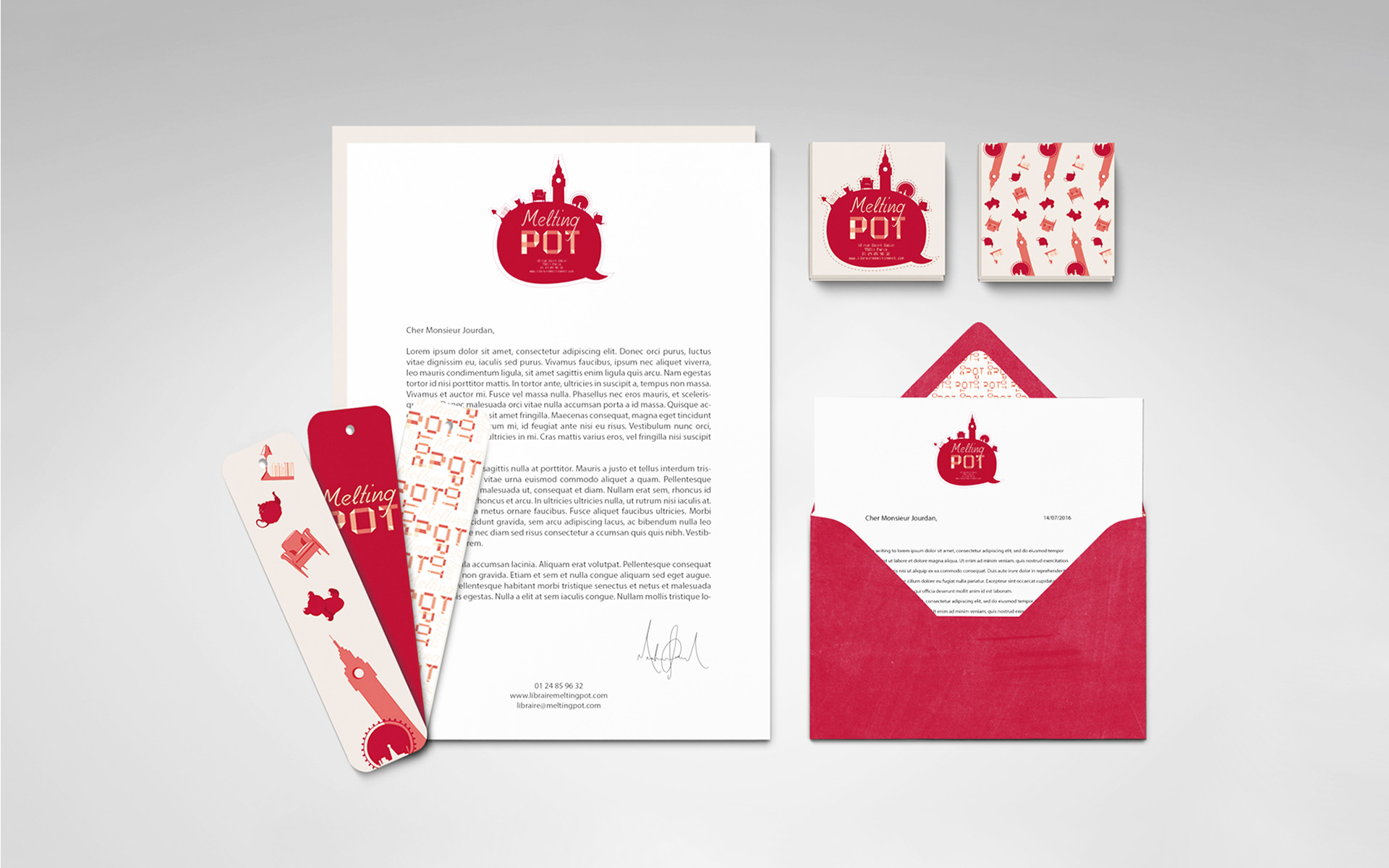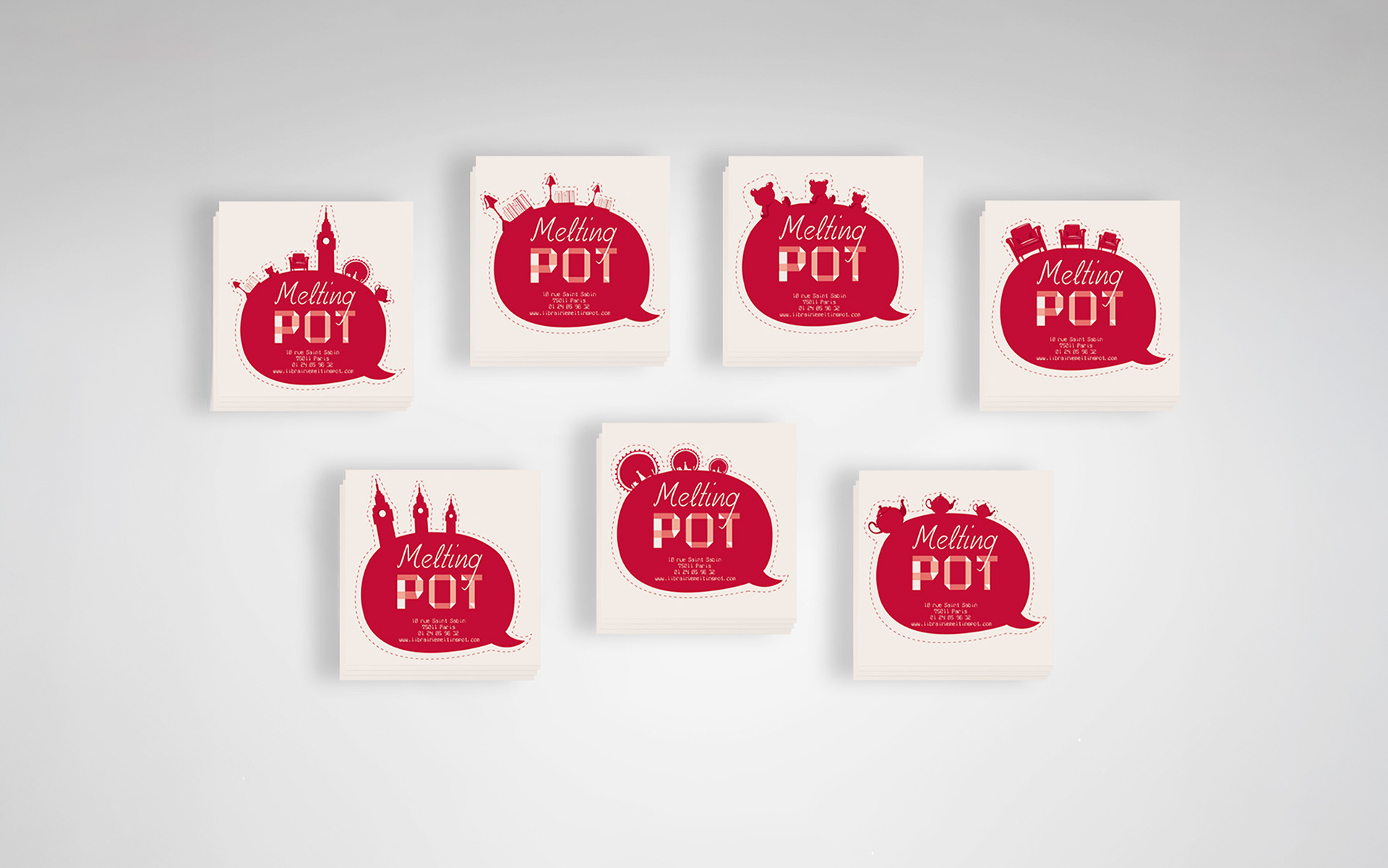 La palette de couleurs vives et accueillantes reflète l'esprit convivial de l'établissement. Mon objectif était de créer une expérience visuelle qui attire les familles et les passionnés de littérature anglaise, tout en soulignant la dimension interculturelle de "Melting Pot".