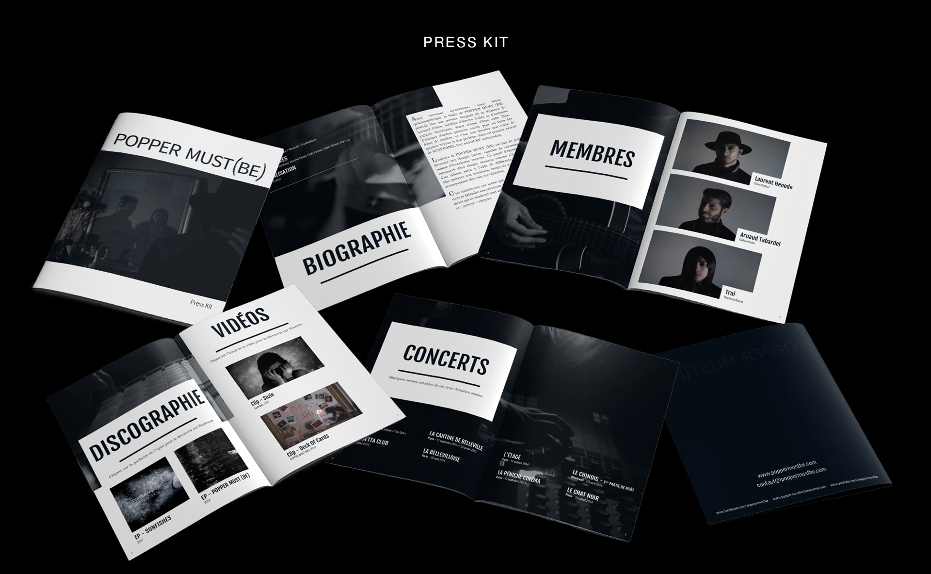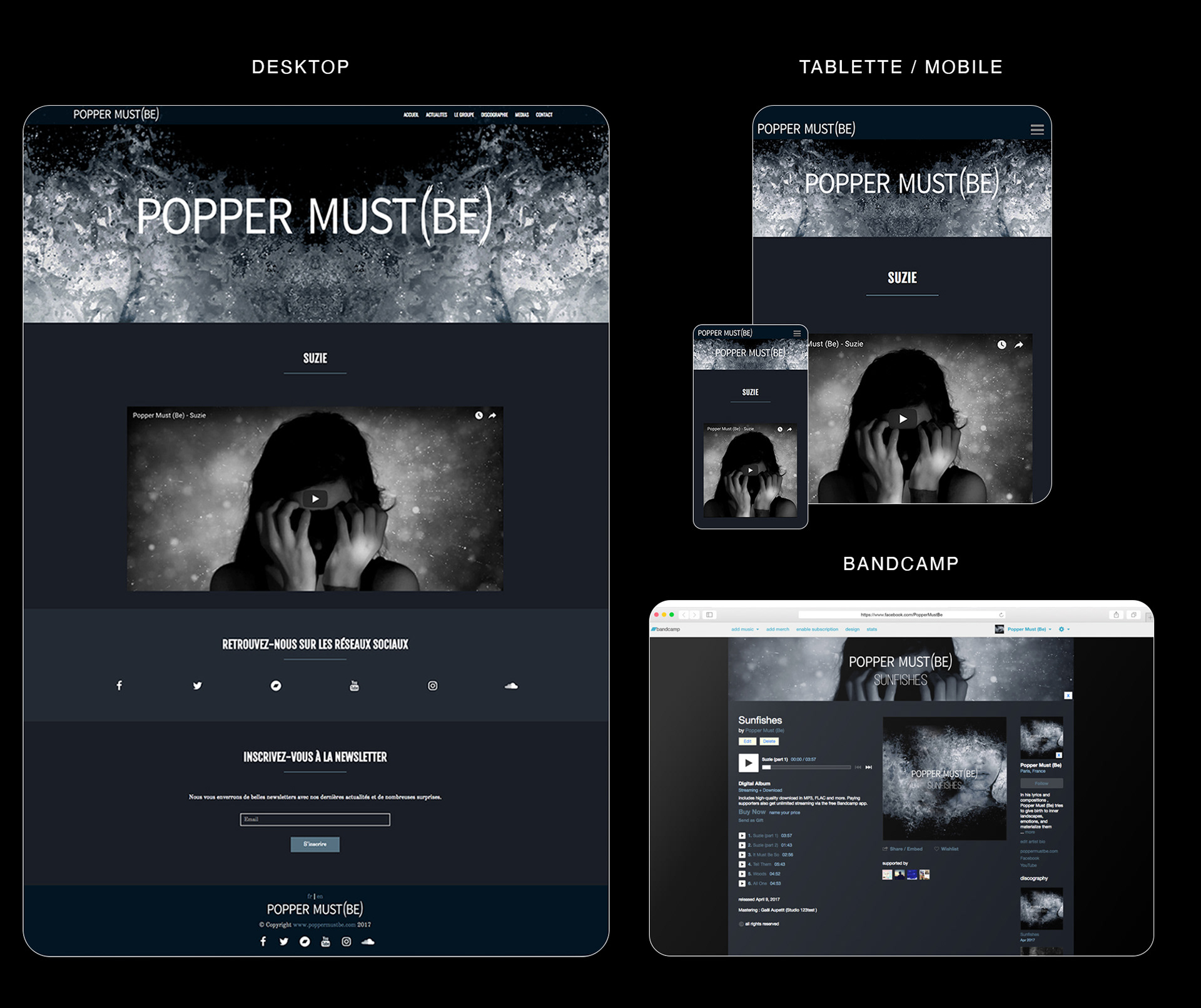 Conception et déploiement du site web, de supports digitaux/promotionnels (soundcloud, bandcamp, goodies...) et du presskit pour maximiser leur visibilité.
