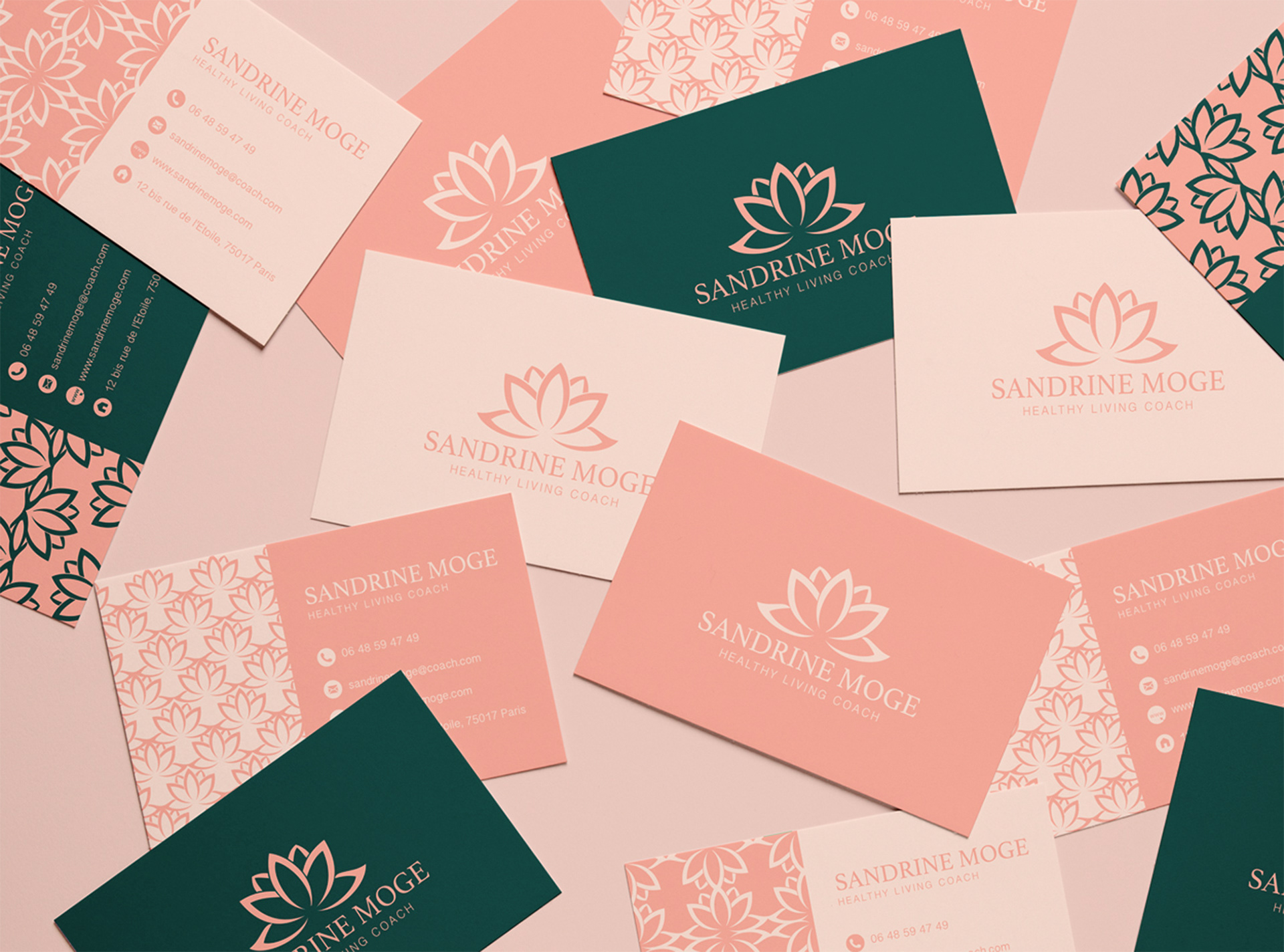 Direction artistique de l'identité visuelle de Sandrine Moge, coach en bien-être.
