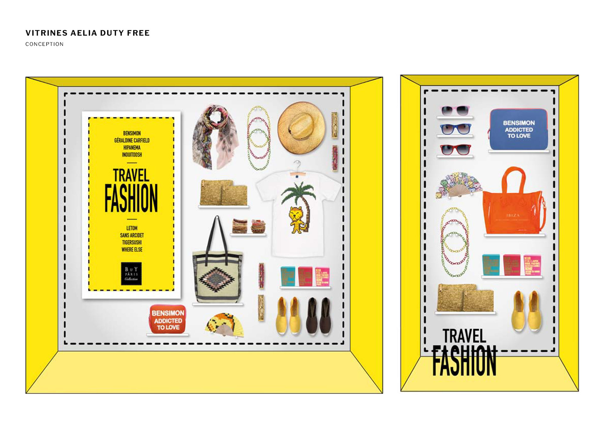 - création de plusieurs vitrines pour le groupe Aélia Duty Free, mettant en avant des marques françaises dans un environnement haut de gamme, spécialement conçu pour les aéroports.